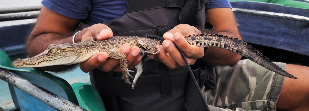 On our way back we found a man on a boat showing a baby crocodile to tourists. It had got caught in a prawn net and ended up with him. He explained how he made his living from this small creature. The one he showed us was about 6 months old. He said he fed it live fish that he put into the bottom of his boat. When it grew to about 1 year it would become unmanageable and then he would release it into the lagoon, and presumably find himself another one that got greedy and ended up on the prawn nets. We gave him also a small donation. These days you help where ever you can, with whatever little you can offer. People may argue about the morality of exploiting a wild animal for the benefit of a man – but it is equally important to consider whether this man and his family may starve if he doesn’t earn his living this way.