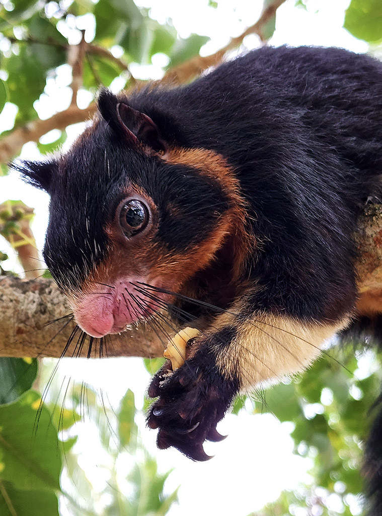 The island temple of Kothduwa has a special attraction for wildlife lovers – several giant squirrels in the bo tree. If you arrive equipped with snacks, they’ll come right down to the edge of a low hanging how and take them right from your hand.