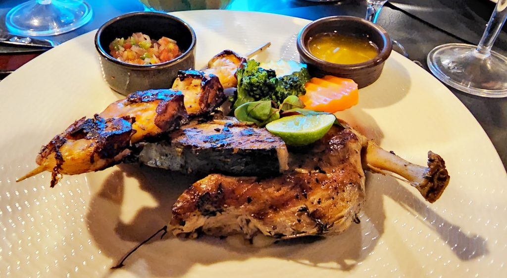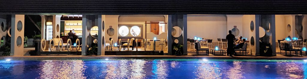 Since there weren’t many guests, dinner was served at the poolside Olive restaurant. We ordered a pitcher of Pimms cocktail that went down nicely with the newfound sense of relaxation. We were served a mouthwatering 5-course dinner that included a crab amuse bush, a roast duck salad, cream of spinach soup, mixed grill, and desserts that included banana fritters or a fresh fruit salad. With few guests, the ambiance was excellent and the attentive staff provided a true fine dining restaurant.