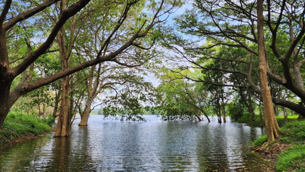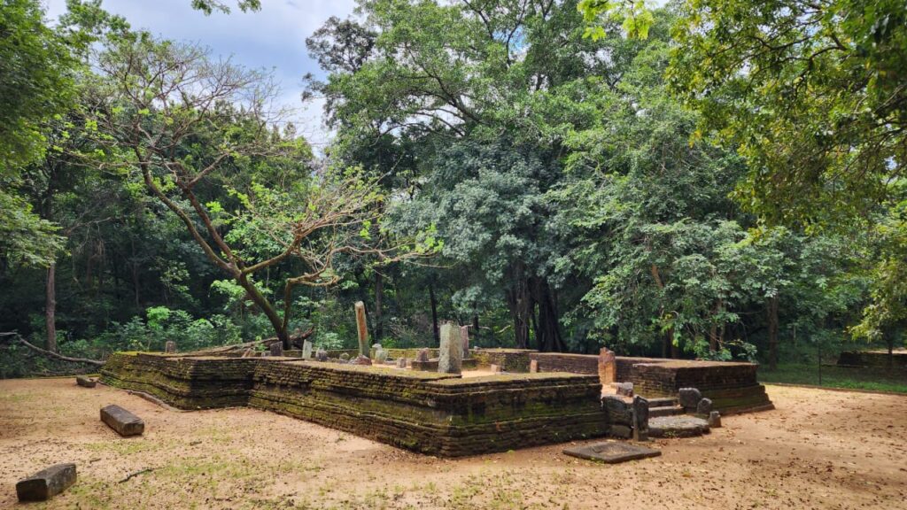 Kalu Diya Pokuna is a place we come to by accident. It bobs up on Google maps and at first we think it’s the more famous Kalu Diya Pokuna temple complex at Anuaradhapura. But this is Dambulla, and a different place altogether.